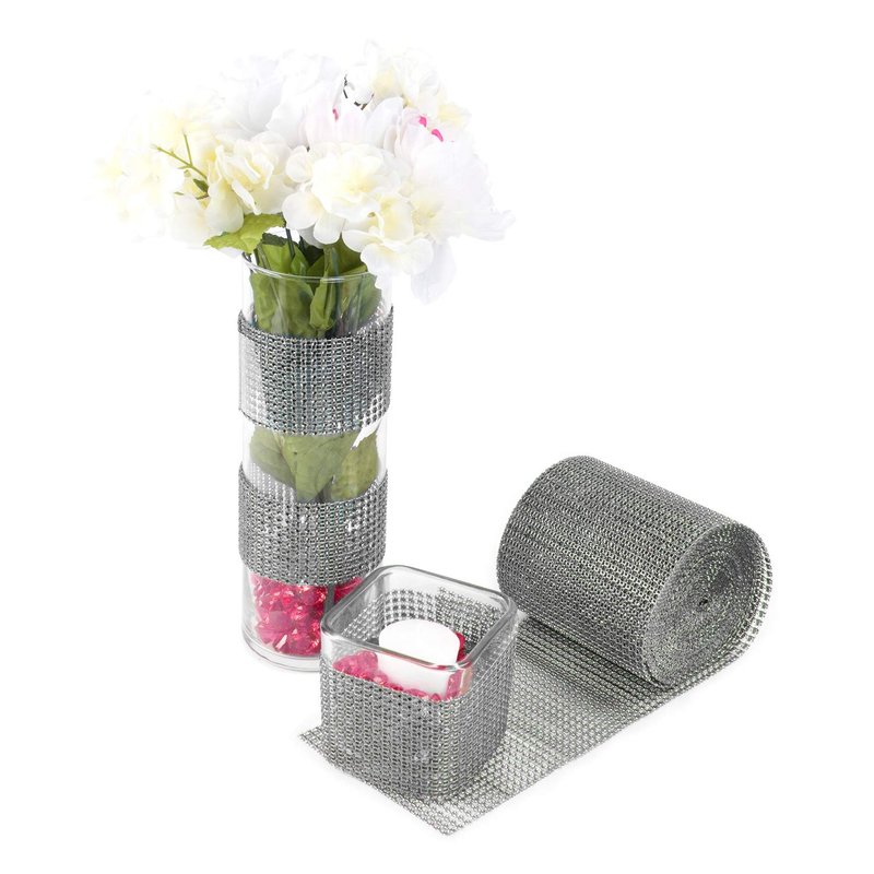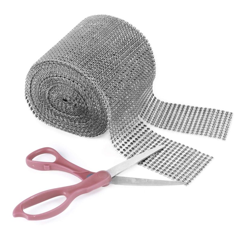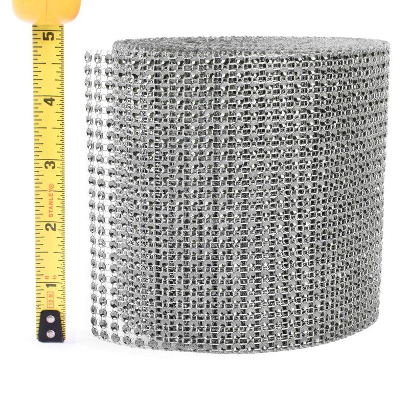 Sparkling Rhinestone Mesh Ribbon for Event Decorations, Wedding Cake, Birthdays, Baby Shower, Arts & Crafts, 4.75" x 10 Yards, 24 Row, 1 Roll (Silver)