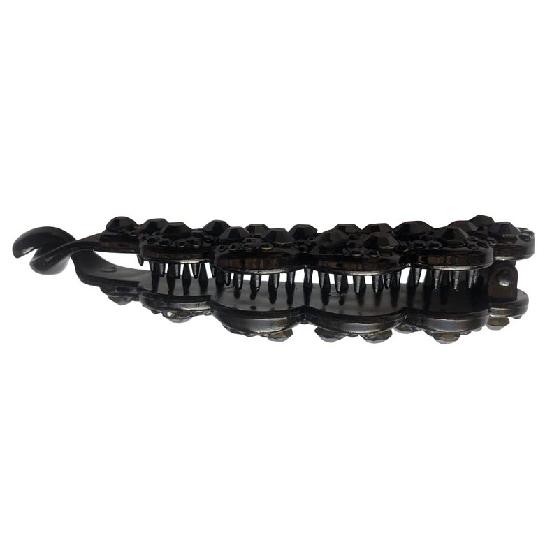 Sparkly Rhinestone Flower Banana Hair Clip Crystal Ponytail Holder Twist Hair Clips No Slip Bow Grip Comb Clamp Hair Grip with Teeth Hairpins Hair Styling,2 Pack (Purple)