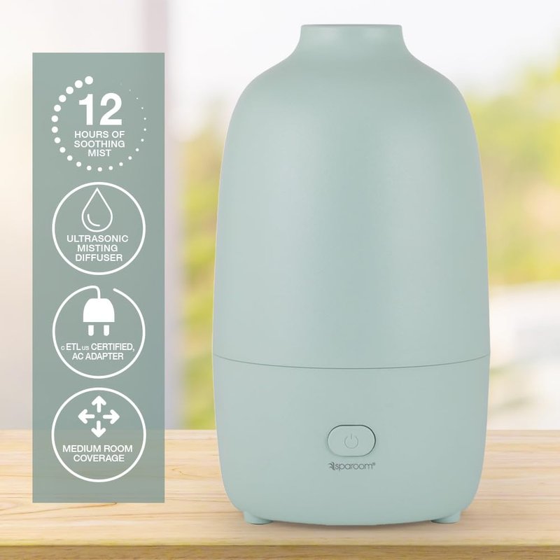 SpaRoom Modern Aromatherapy Ultrasonic Misting Essential Oil Diffuser for Medium Rooms, 200 mL Water Capacity, Automatic Shut Off, Sage Willow