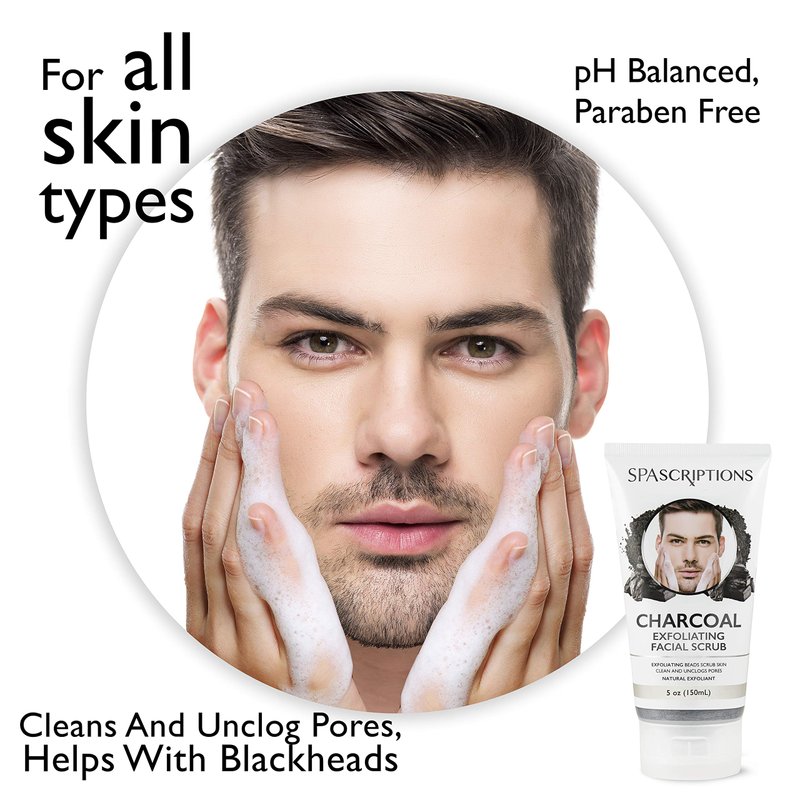 Spascriptions Charcoal Facial Cleanser Exfoliating Facial Scrub Face Wash with Natural Exfoliant- 5 Oz