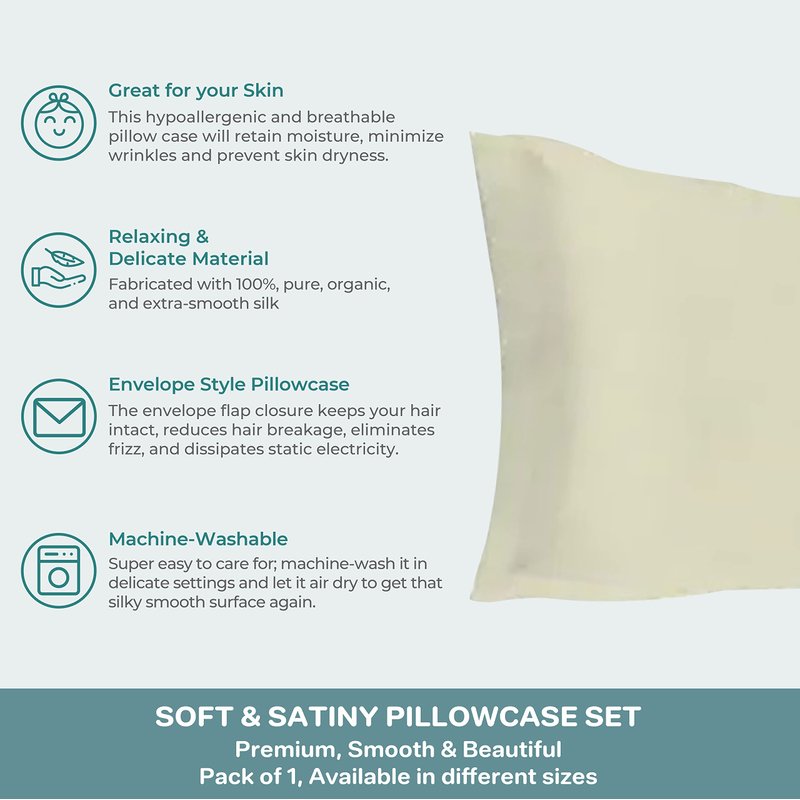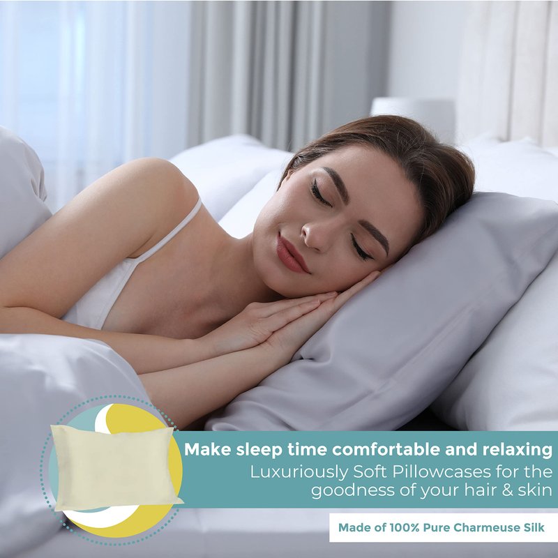 - Silk Pillowcase: This premium pillowcase keeps your hair and skin smooth. Many dermatologists recommend a pure silk pillowcase for its smooth surface as it helps reduce hair breakage & minimize facial wrinkles.