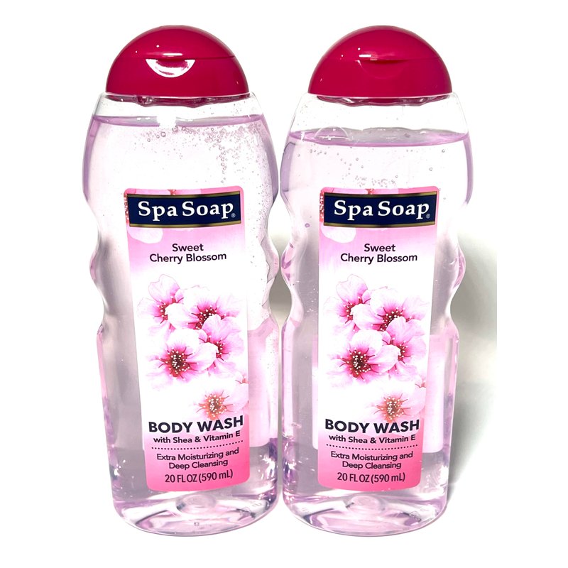 Spasoap Body Wash, With Soft Refreshing Scent Extra Moisturizing and Deep Cleansing with shea & Vitamin E (2 count) 20FL oz each; Body soap smooth feeling (Cherry Blossom)