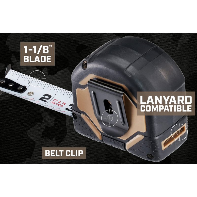 Spec Ops Tools 25-Foot Tape Measure Tool Set, 1 1/4" Double-Sided Blade, Military-Grade Composite Case, 3% Donated to Veterans, 2-Pack