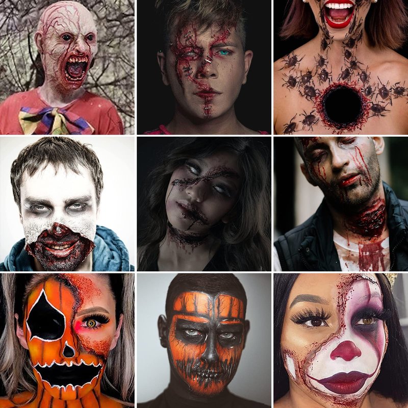 - HORROR REALISTIC EFFECT: You can use our Halloween makeup set to achieve scary effects and real makeup. Such as burns, abrasions, small and large wounds, cuts, scars, deep bloody wounds, torn skin, warts, etc.