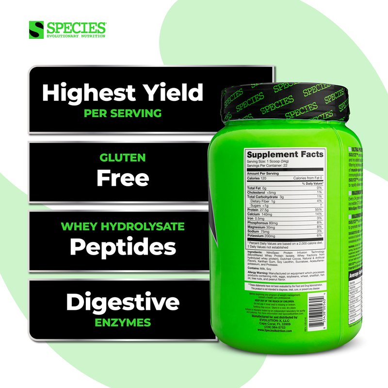 Species Nutrition Isolyze Whey Protein Powder, 100% Whey Isolate Protein, Whey Protein for Muscle Building, 27.5g Protein Per Scoop, No Sugar & Low Fat Protein (Chocolate Milk, 22 Servings)