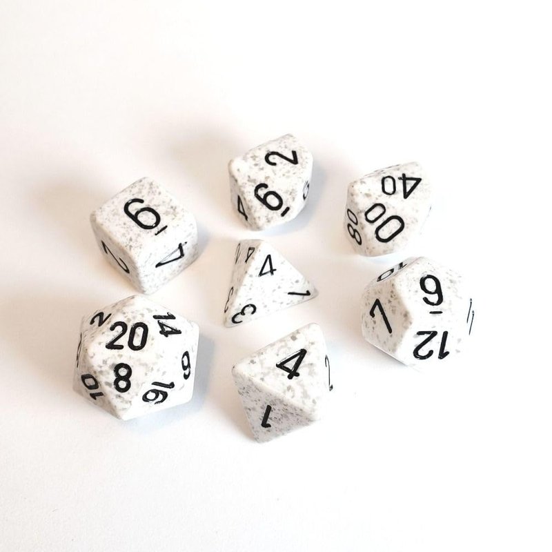 - SET OF 7 POLYHEDRAL DICE: Add some excitement to your next game night with the Speckled Poly Arctic Camo pack of 7 polyhedral dice. Dice come in a variety of sizes perfect for your favorite tabletop RPGs.