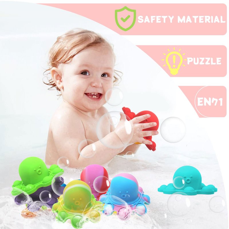 - 【Safe and Washable】Our octopus is made of high-quality silicone material, which has passed the CPC certification. Compared with other octopuses, we improved the skin-like touch coating, which is more comfortable to touch. Easy to clean, as a baby bath toy baby loves to play with.