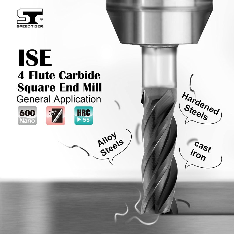 SPEED TIGER Micrograin Carbide Square End Mill - 4 Flute - ISE1/4"4T (5 Pieces, 1/4") - for Milling Alloy Steels, Hardened Steel, Metal & More – Mill Bits Sets for DIYers & Professionals