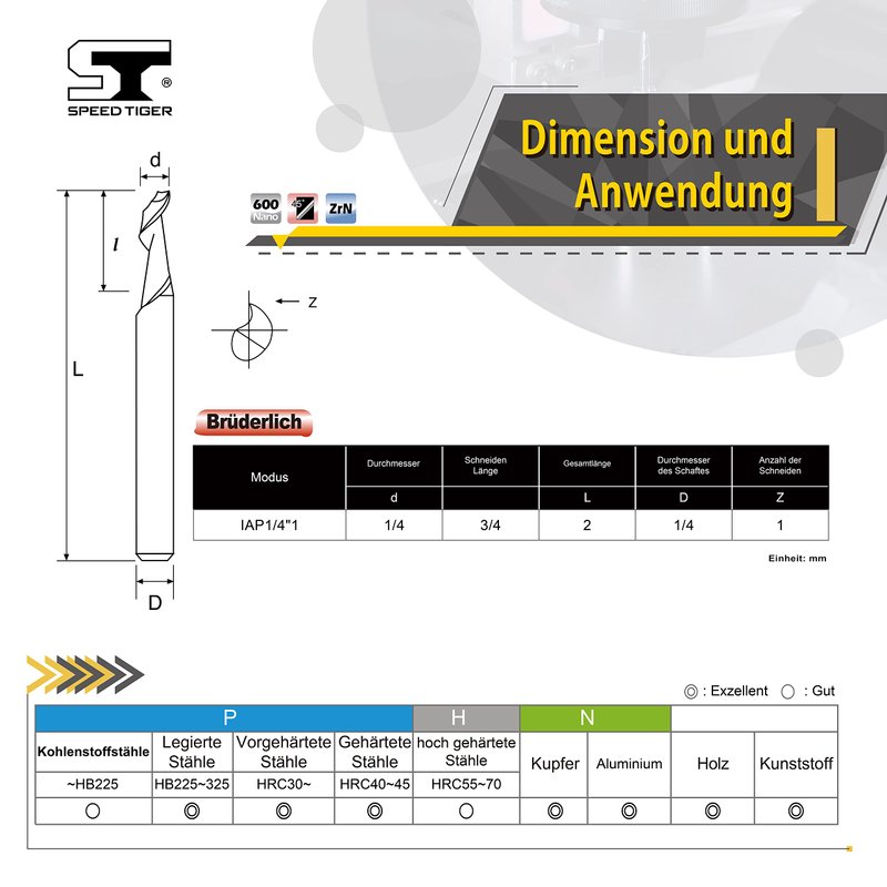 SPEED TIGER Solid Carbide CNC Spiral O Single Flute End Mill - IAP1/4"Diameter 1/4"Shank 2"OVL(1 Piece, 1/4") - for Aluminum, Wood, Plastic, Brass, Copper Cutting – Mill Bits Sets for Professionals