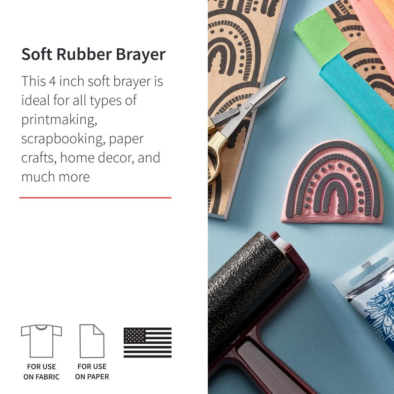 - SOFT RUBBER BRAYER – This 4 inch soft brayer is ideal for all types of printmaking, scrapbooking, paper crafts, home decor, and much more.