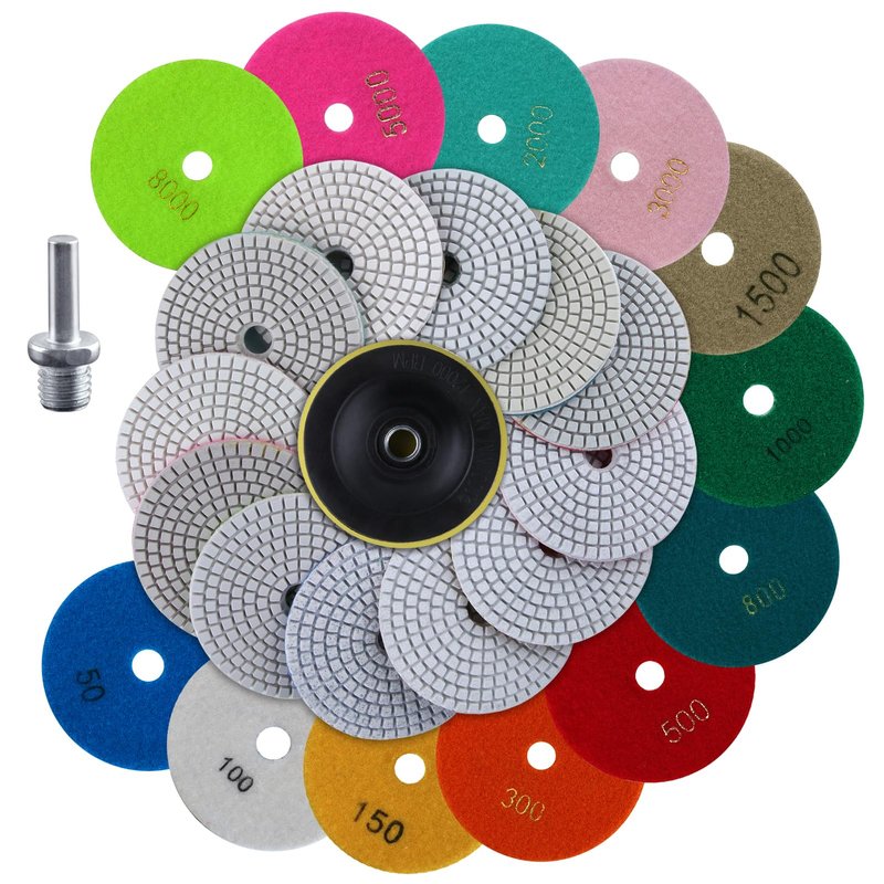 SPEEDWOX 14 Packs 4 Inch Diamond Polishing Pads 12PCS Wet/Dry Polish Pad Kit Stone Trimming and Polishing Disc for Drill Grinder Polisher 50-8000 Grit Pads for Granite Marble Stone Concrete Countertop