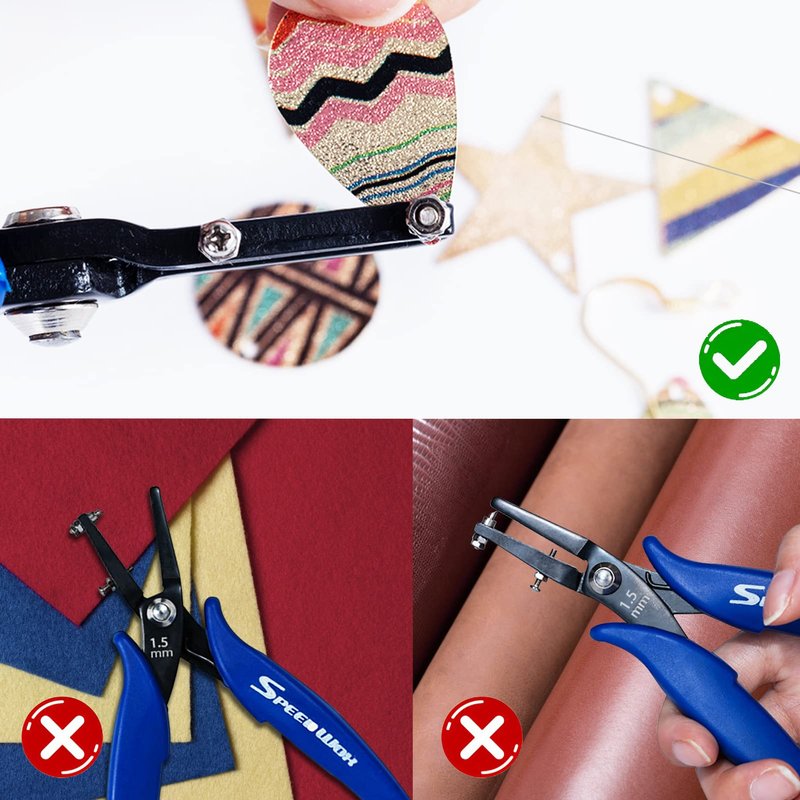 - 【USAGE】 Easily and accurately punches a 1.5mm hole in silver, copper and other soft sheet metals up to 0.5mm or 0.02 inch thick. The angled tip creates a smooth, clean hole without rough edges. Ideal for most craft, hobby, DIY project, jewelry making jobs. Not suitable for punching hole in leather strap, felt cloth and hard objects such as stainless steel.