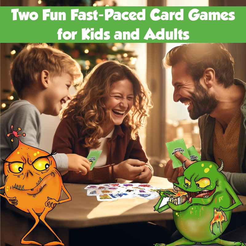 Speedy Monsters Kids Card Games, 2 Fun, Fast-paced Card Games for Kids 8-12. Easy to Learn. No Reading Required- Kid Card Games ages 4-8. Kids Games and Family Game Night Friendly |2-6 Players
