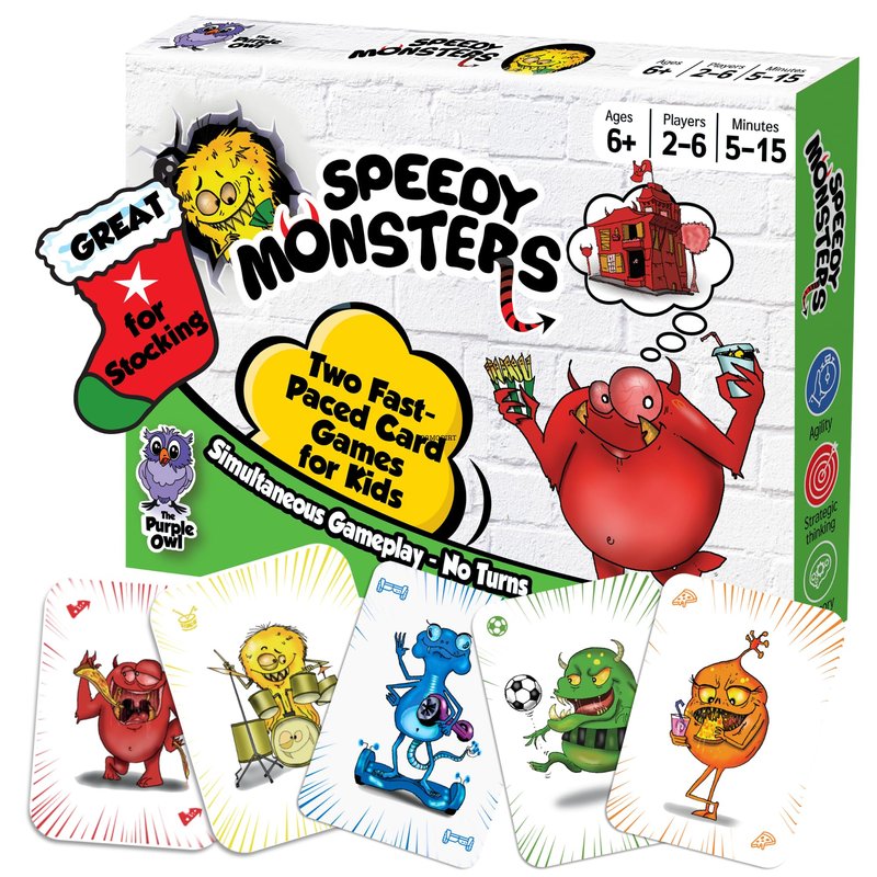 - So much fun! Prepare to have your mind blown by the lightning-fast action of the Speedy Monsters card game set by The Purple Owl. In this game, waiting for turns becomes a thing of the past.