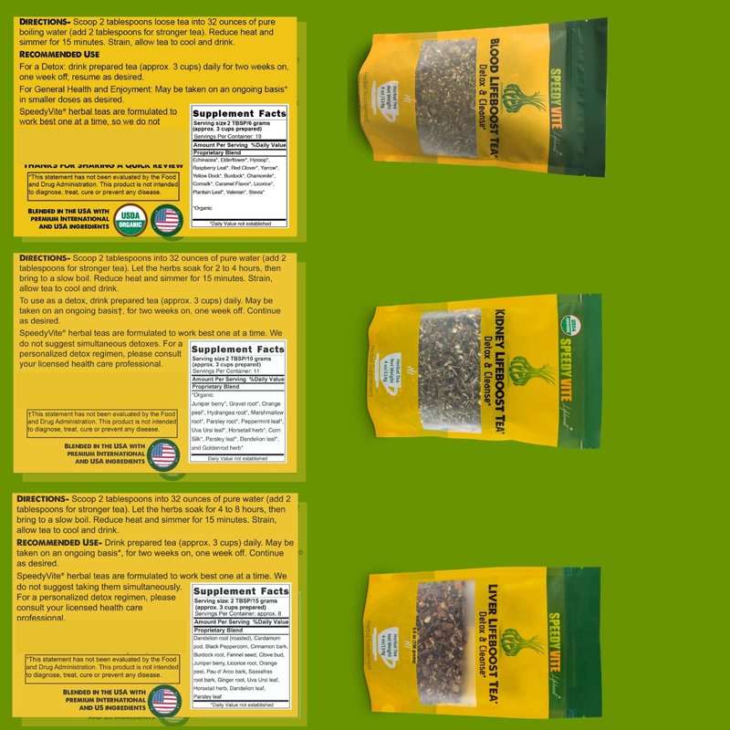 - Your Favorite Speedyvite Teas, now in 1 value pack - Organic Herbal Support of the kidney, bladder, liver, gallbladder and immune system