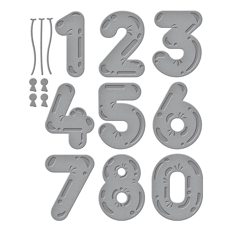 - There are 11 thin metal cutting dies to help make a complete balloon from the number to the knot to the string.