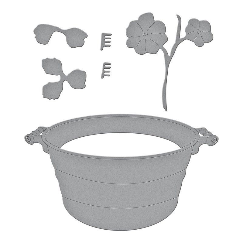 Spellbinders Nasturtium and Galvanized Wash Bucket Etched Dies, Metal