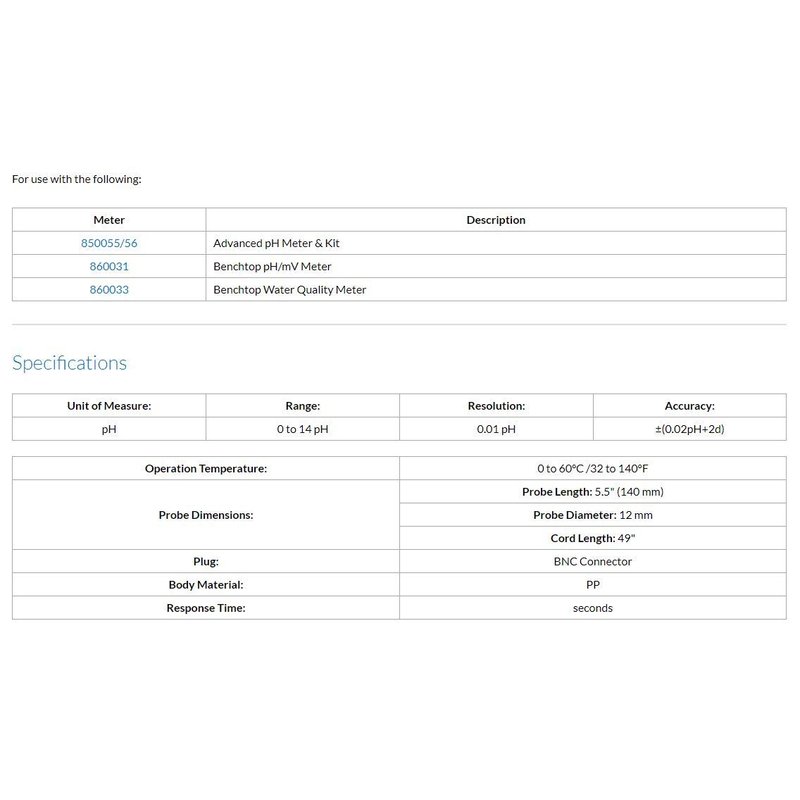 - Sper Scientific 850059 pH Probe with ATC Replacement
