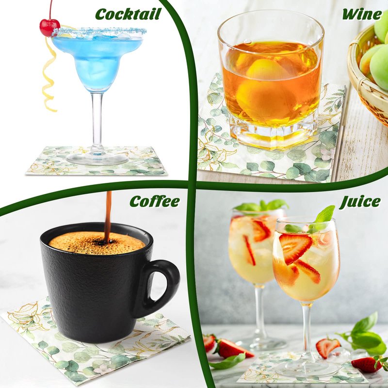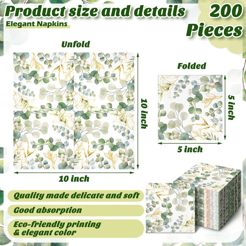 - Distinctive and Elegant: these baby shower napkins are not just functional, they're fashionable; These spring dinner napkins are clearly printed with exquisite eucalyptus patterns, paired with bright and fresh colors, which are eye catching and delicate; Their versatile green leaves design adds a refreshing touch to your dining or coffee table