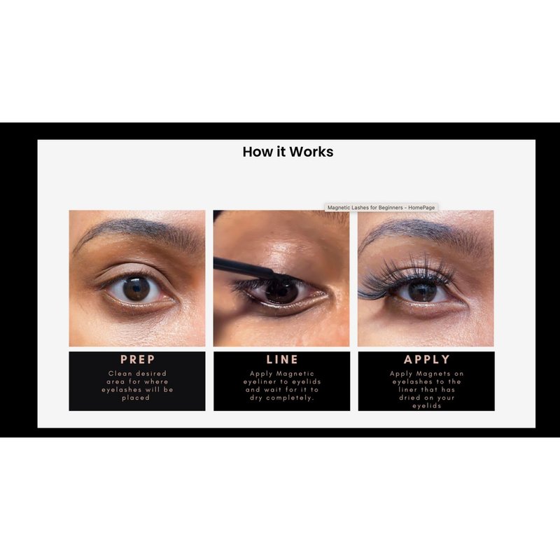 - Unlike extensions, magnetic eyelashes don't take too much time or effort to put on. You don't have to manually apply individual strands onto your natural lashes or use any messy adhesives to keep them in place. All you need is our liquid liner which is formulated with innovative magnetic particles that cause the lashes to quickly attach to it. It does not leave a thick or sticky residue and won't clump or smudge your eye makeup.