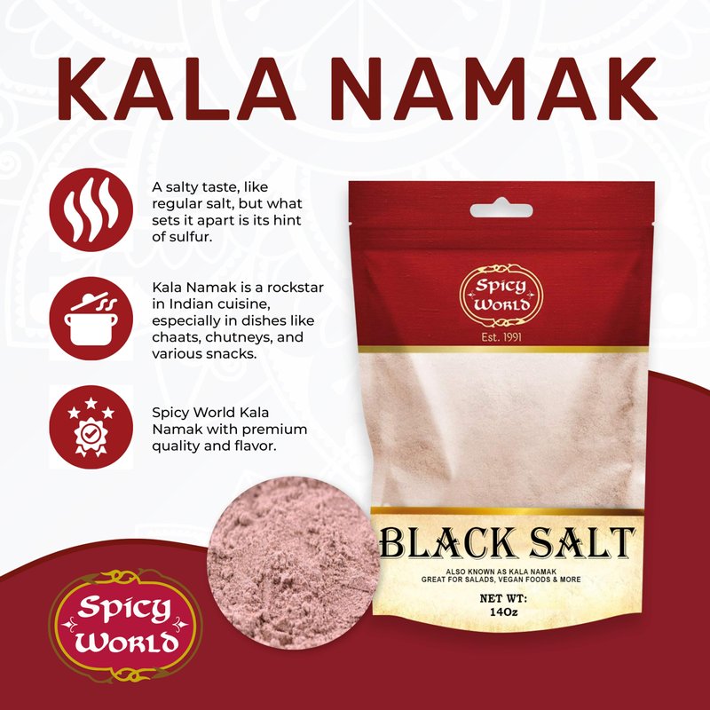 - ❤️️ The Kala Namak salt is also known under the name Black Salt, is a specialty in the Pakistan / Indian cuisine. It is pinkish grey rather than black and has a very distinctive sulfurous mineral taste similar to hard-boiled eggs. This Black Salt is used in Pakistan / Indian cuisine as a condiment and is added to chaats, chutneys, raitas and many other savory Indian snacks.