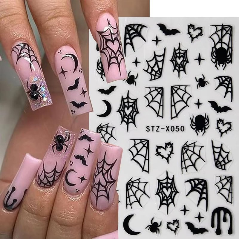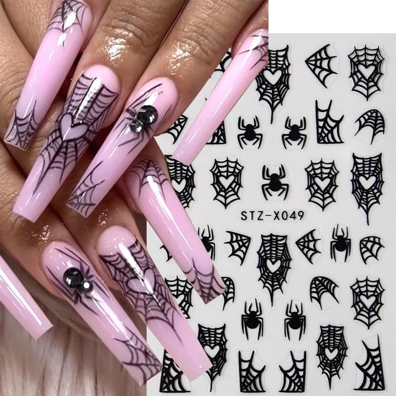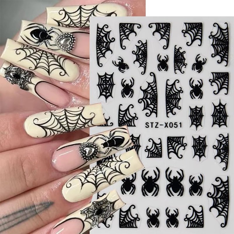- Easy to Use: 3D self-adhesive spider nail stickers for nail art design, requires no glue, just remove sticker then stick this 3D nail decals on your nail. Apply top coat gel to seal to make the stickers last longer