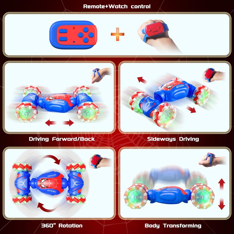 Spider Remote Control Car for Boys, 2.4GHz 4WD Gesture Sensing Rc Stunt Car with Lights Music - Birthday Gifts for Boys Girls,360°Rotate Transform Drift Rc Cars for Boys Age 6-12