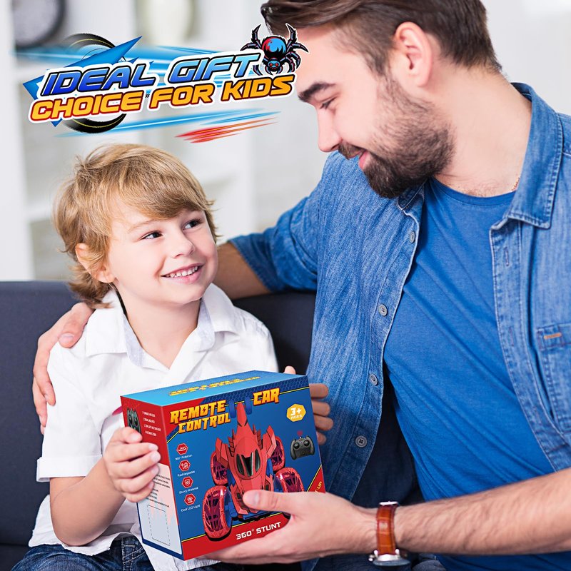 - PERFECT GIFT FOR KIDS: This awesome spider remote control car is a perfect outdoor toys for boys and girls who love spider and cars, which bring kids endless fun time,make it a great stocking stuffers for birthday gifts christmas gifts or dinosaur-themed parties favors.Definitely a perfect gift for your nephew,son and grandson age 3-5 4-8 6-8 Year olds boys girls