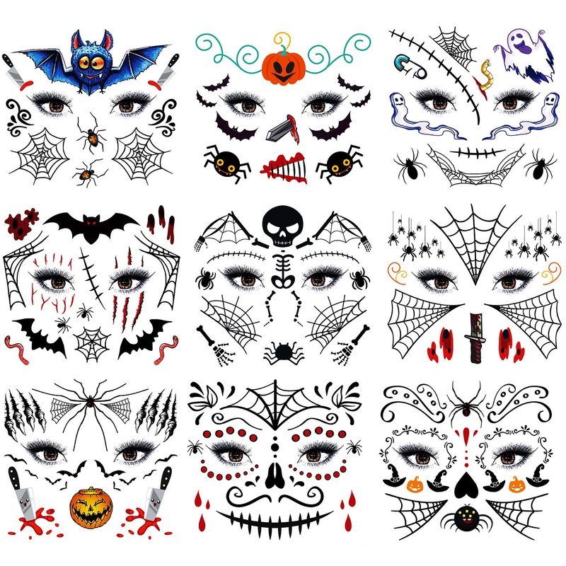 Description of Leoars Temporary Tattoos Halloween *Our halloween temporary tattoos are printed using high quality water transfer paper which are non toxic, contain no PPD and are 100% cosmetically skin safe. *The temporary body tattoos can be placed anywhere on your hands, arms, face, neck, shoulders, chest, back, ankles, feet, legs, fingers, knuckles.