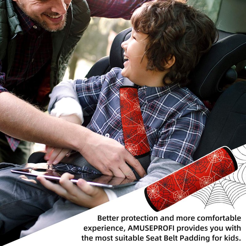- Spider Kids Seat Belt Cover is made of 100% Neoprene , it is comfortable, safe, lightweight, adjustable, suitable for all seasons.