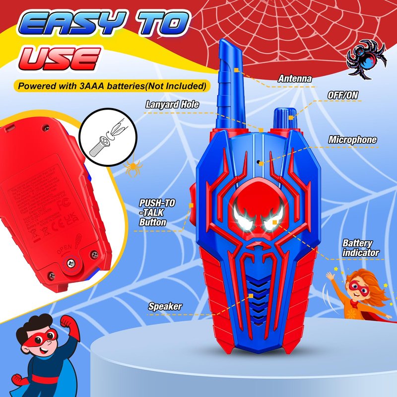 Spider Walkie Talkies for Kids Boys: 3 Pack Kids Walkie Talkies Toys Christmas Gifts for 3 4 5 6 7 8 Year Old Girls Boys Family Camping Outdoor Toys Two Way Radio Boy Girl Gift Age 3-8