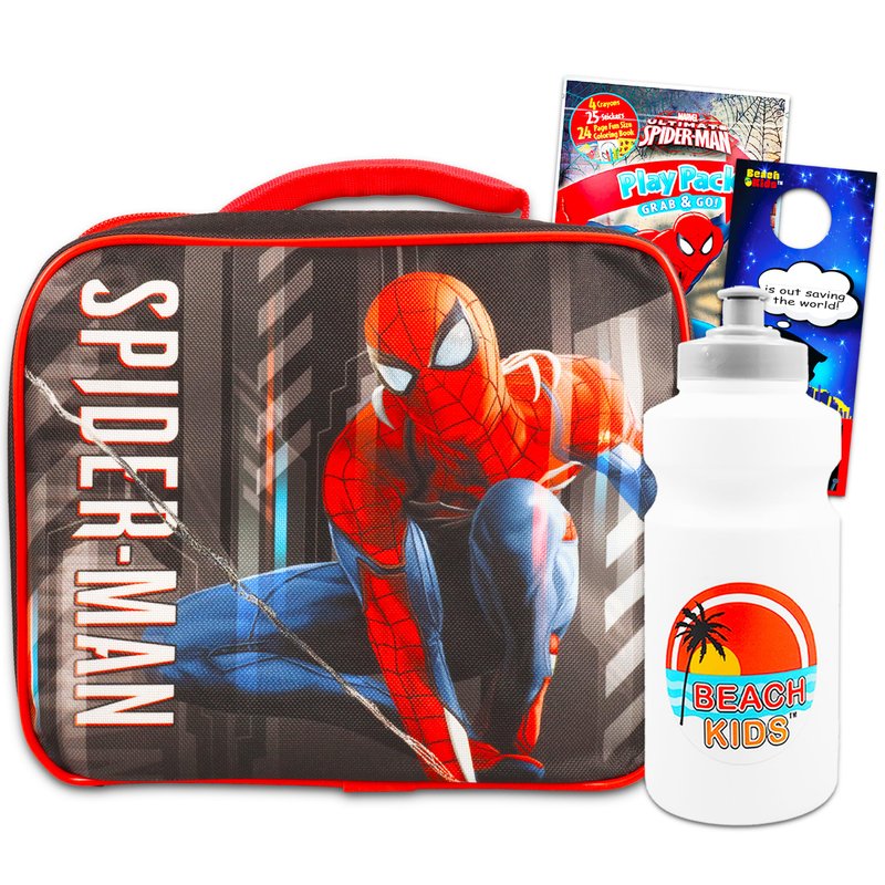 - Spiderman Lunch Box Travel Activity Set ~ Insulated Spiderman Lunch Bag with Spiderman Coloring Book and Stickers for Boys Girls Kids (Spiderman School Supplies Bundle)