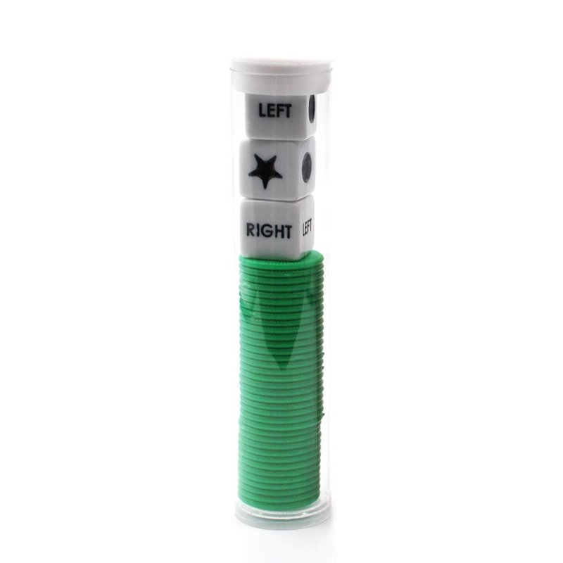 Spidfee Rigth Left Center Dice Game Set with 3 Dices + 36 Chips, Green Chips