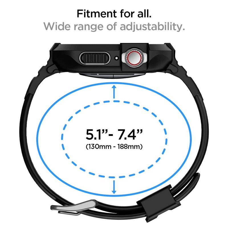 - Specifically engineered to fit Apple Watch Band with Case (40mm/41mm) Series 9/8/SE2/7/6/SE/5/4. Fits 5.1 inch to 7.4 inch (130mm - 188mm) wrists.