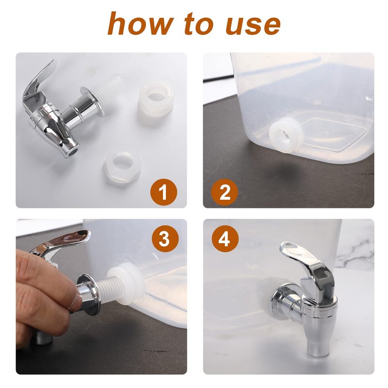 - INSTALLATION METHOD - Please clean the water dispenser spigot before use. First, put the silicone pad on the beverage faucet connection pipe, and then insert the replacement spout for beverage dispenser into the dispenser, at last lock nut.