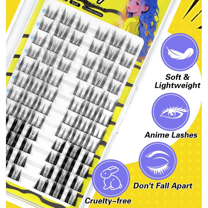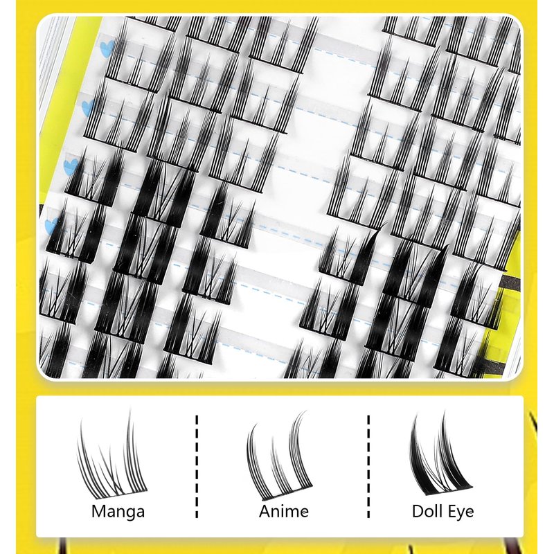 - Enhanced Eye Tail: Lengthening lash clusters at the outer corners of the eyes create a deeply alluring effect, with a C-curl design that adds an anime-inspired touch. This enhancement makes your eyes appear more profound and animated