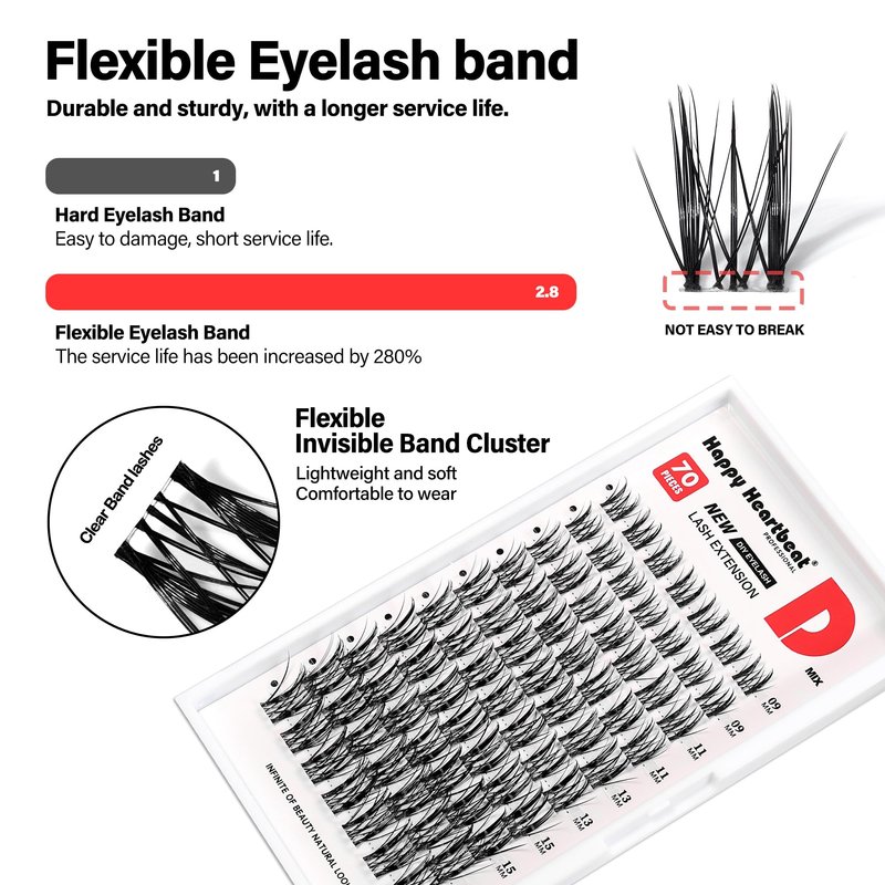 Happy Heartbeat Individual Eyelash Extension Flexible Band Lash Clusters C D Curl Volume Reusable DIY False Eyelashes