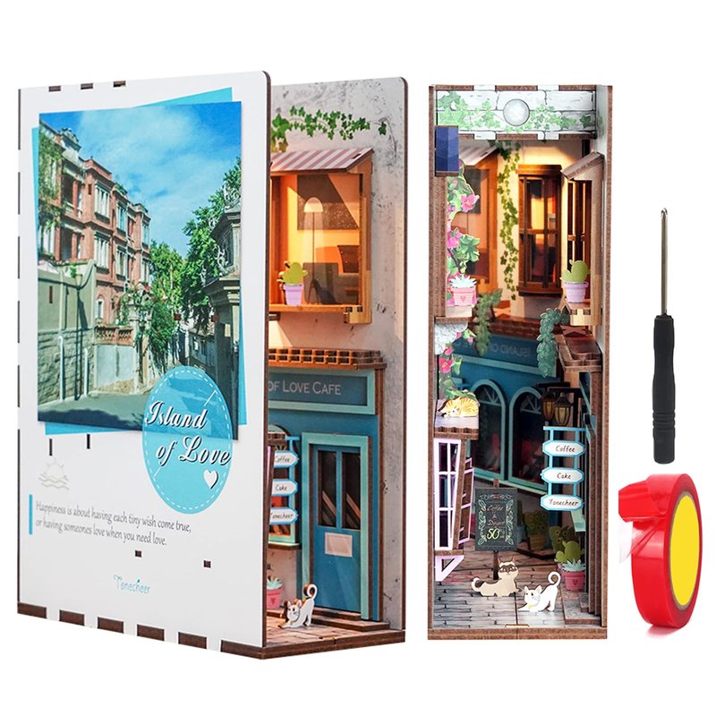 - 【PERFECT GIFT & COLLECTIBLE & DECOR】Creative and meaningful gift for Valentine's Day & birthday & Christmas to your friends, family and lover!Especially For those who love crafts, miniatures,and handmade,this is a perfect gift and collectible.More importantly,can cultivate their hands-on ability and creativity while enjoying the DIY fun!when you finish the booknook,More than just a simple book stand,its exquisite look and lights can be used as an ornament or artwork.