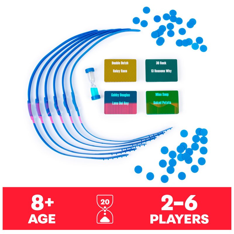 - Includes: 6 Headbands, 48 Scoring Chips, 200 Cards, 1 Sand Timer, and Instructions. For 2 to 6 players