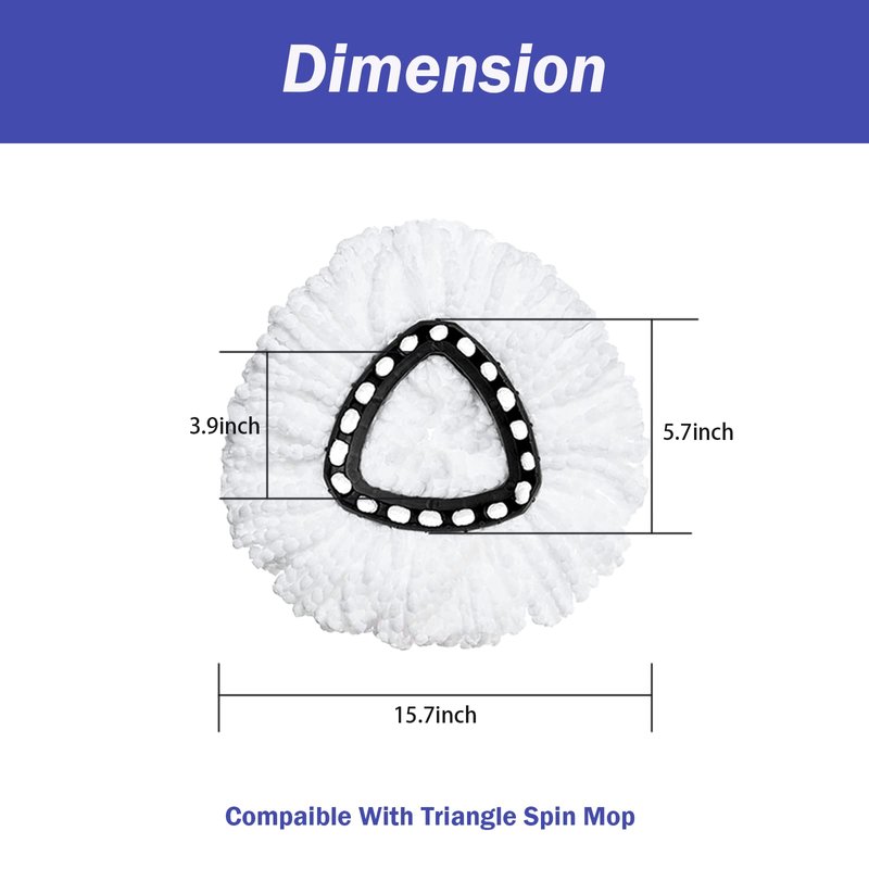 - EASY TO INSTALL: With a simple snap-fit installation,the dimensions are 3.9" in diameter and 5.7" in diameter on the outer triangular side,our special design gives you more stability when installing and cleaning,please note that the mop head is not compatible with the 2-tank system,Fits perfectly with 1 can mop system.