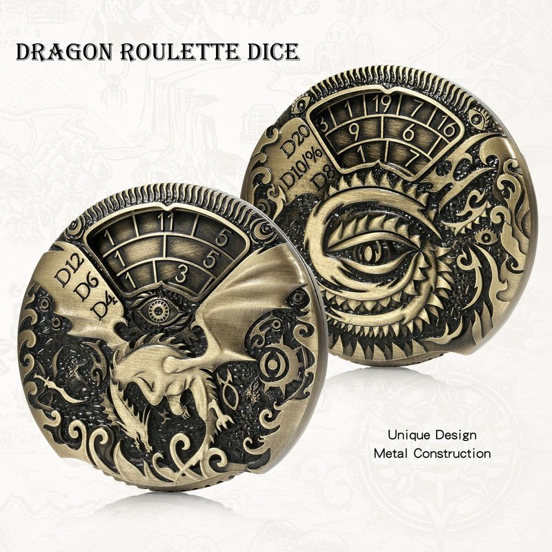 - 7-in-1 Spinner Dice:There are 6 different sets of numbers on both sides of the roulette wheel, one side is engraved with D4, D6, and D12, and the other side is engraved with D8, D10, and D12.