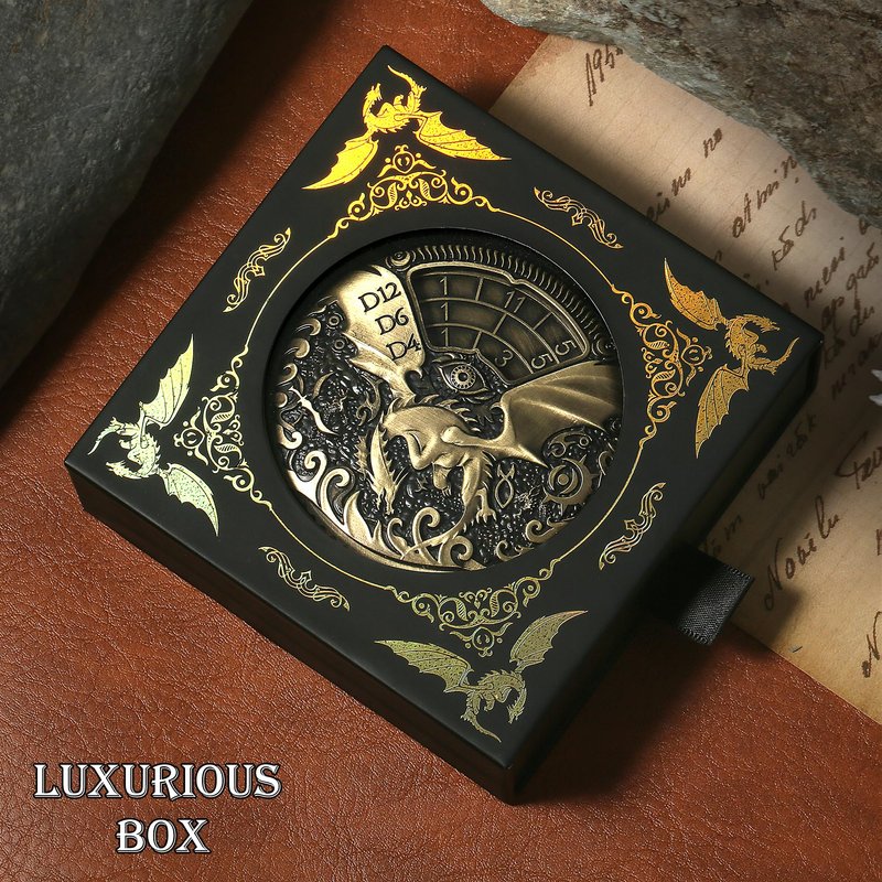 - Package:Gorgeous gift box with foam liner decorated with laser dragons, there is a window on the top of the gift box for easy display and collection.An amazing gift for dnd player.