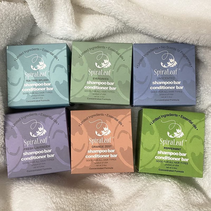 SpiraLeaf Shampoo bar and Conditioner Bar Set, Unscented bars made with Limited Ingredients, Concentrated Formula, Natural Oils, Color-Free, Made in the USA