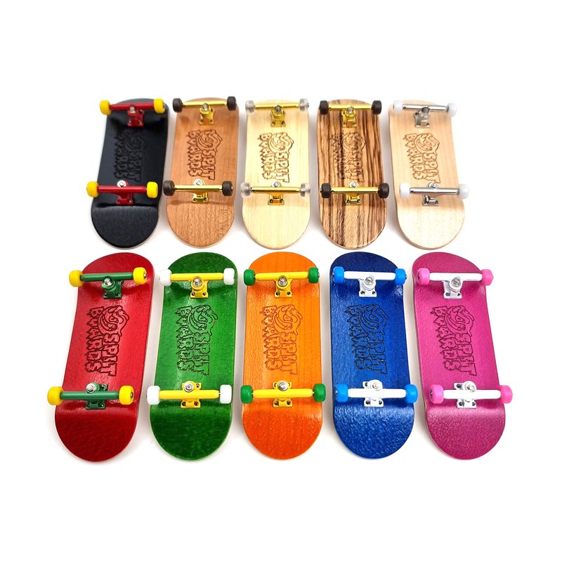 SPITBOARDS 34 mm Assembled Pro Fingerboard Set-Up (Complete) | Real Wood Deck (5-Layers) Concave Shape | 34 mm Single-Axis Pro Trucks with Lock Nuts with Rubber Bushings | Skate Style Polyurethane CNC Pro Wheels | Real Stainless Steel Ball Bearings | Engraved Laser Design | Finger Skate Finger Skateboard for all ages. Incl. Foam Grip Tape Tool and SPITBOARDS Sticker Pack.
