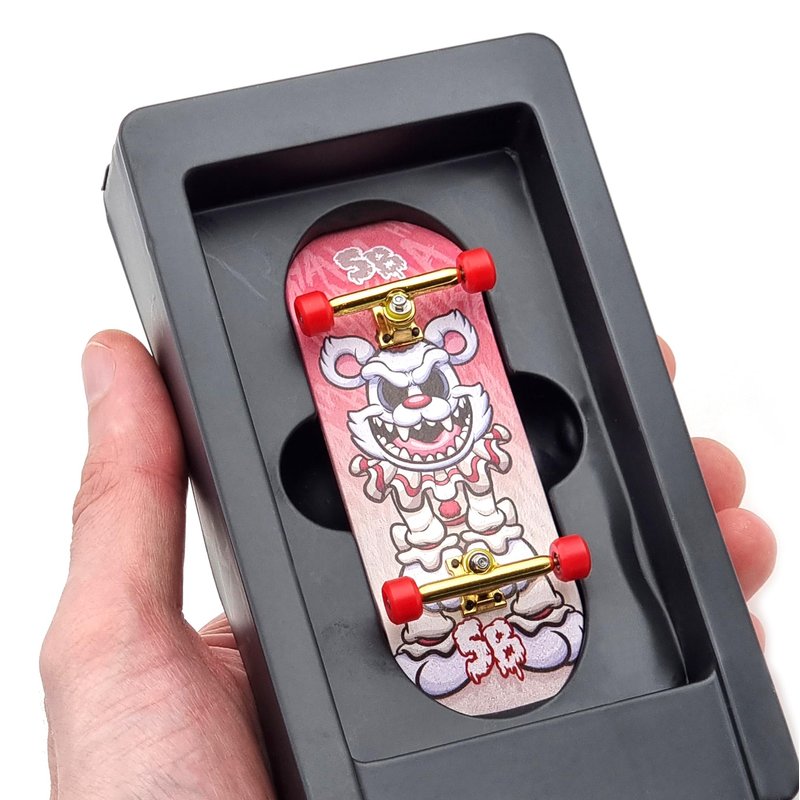 SPITBOARDS 34mm x 96mm Pro Fingerboard Set-Up (Complete) | Real Wood Deck | Pro Trucks with Lock-Nuts and Pro Bushings | Polyurethane Pro Wheels with Bearings | Hahaha Clown