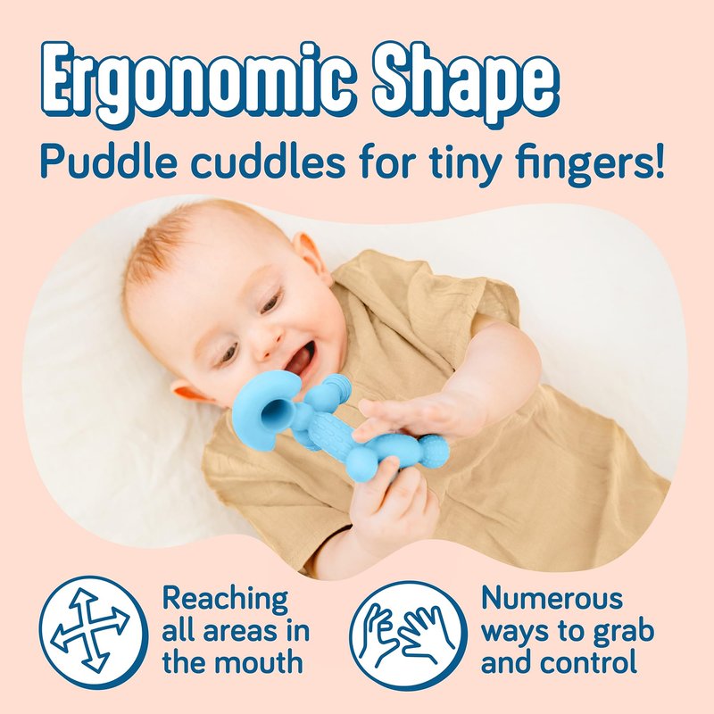 - RELIEF DELIGHT IN EVERY BITE. Baby teethers 0-6 months are a soothing sanctuary for the baby’s sore gums. Baby teether toys like this cute poodle aid in new teeth eruption and foster early oral hygiene habits, all the while being fun to play with.