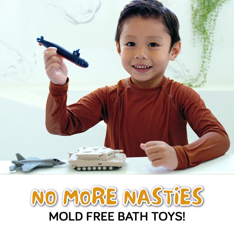 SplashEZ Mold Free Bath Toys for Kids & Toddlers, Sealed No Hole Baby Bath Toys, Soft Durable Army Set, Float on Water, No Mold Design for Shower Tub Pool, Infant Babies Ages 0-1-3-6-12-18 Mo