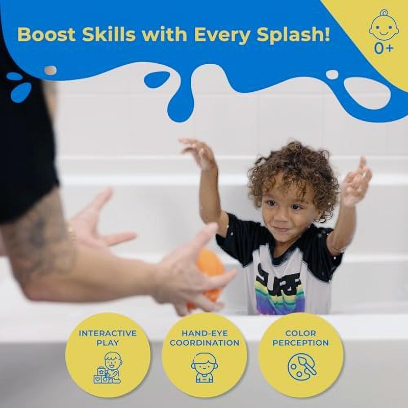 SplashEZ Mold Free Bath Toys for Kids & Toddlers, Sealed No Hole Baby Bath Toys, Soft Durable Sport Balls Set, Float on Water, No Mold Design for Shower Tub Pool, Infant Babies Ages 0-1-3-6-12-18 Mo