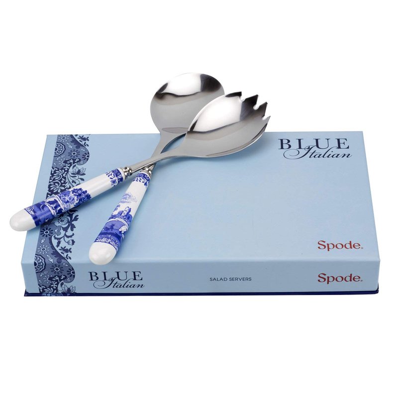 • SERVING WITH STYLE: Serve your guests in style with the Spode Blue Italian set of salad servers from Spode. These 10-inch stainless steel salad servers feature the iconic Blue Italian countryside design on each porcelain handle.