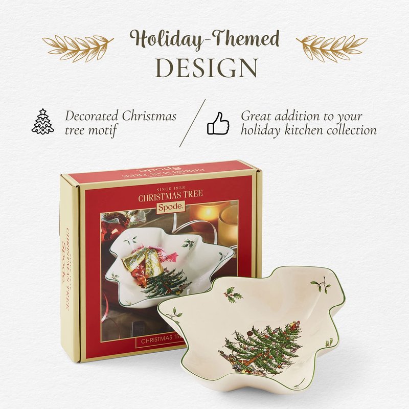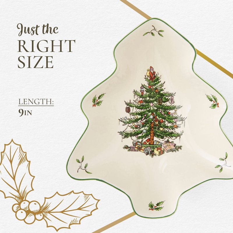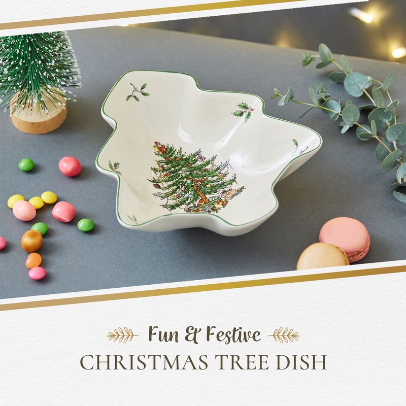 - Spode Christmas Tree Serving Dish brings the cherished nostalgia of Christmases past with its iconic holiday design dating back to 1938.